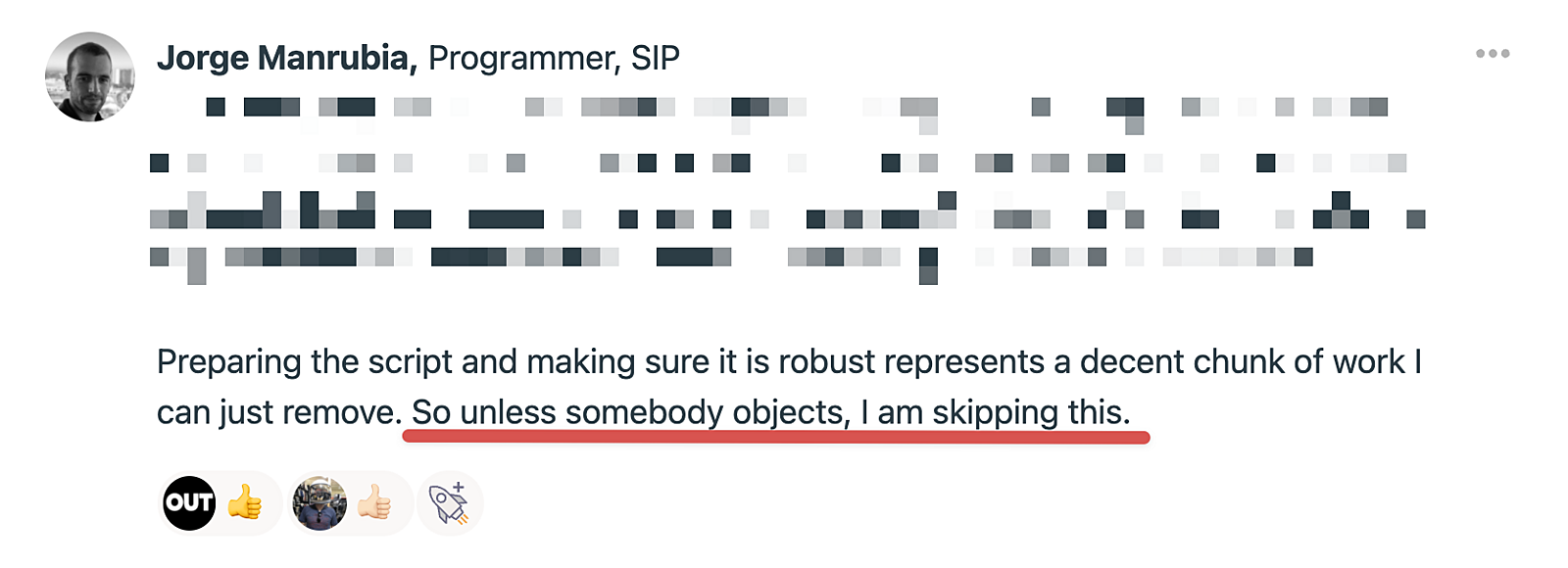 Finally, my favorite is a subtle iteration over the previous one: explain your idea but, instead of asking for validation, involve other people so that they can weigh-in if they feel like it. Doing this is not rocket science, just ask for feedback in a non-blocking way. Here are two recent examples where I did this: